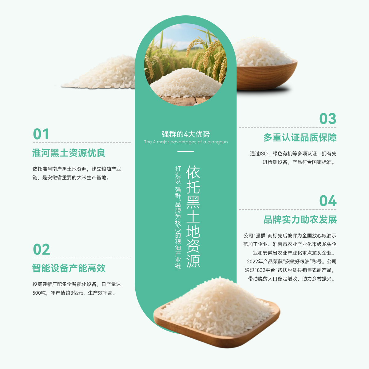 - 壽縣強群糧油貿(mào)易有限公司成立于2011年,座落在淮南市壽縣澗溝鎮(zhèn),是一家集種植、加工、收儲、銷售于一體、以生產(chǎn)中、高檔質(zhì)優(yōu)、特色類大米為主的綜合性企業(yè)。公司依托準河南岸的黑土地資源,打造以“強群”品牌為核心的糧油產(chǎn)業(yè)鏈,是安徽省重要的大米生產(chǎn)基地。 為響應(yīng)市場增長需求,公司2021年啟動二期擴產(chǎn)工程,其中新生產(chǎn)廠區(qū)建設(shè)投入資金近億元,建設(shè)現(xiàn)代化新生產(chǎn)線,總占地面積約4000...